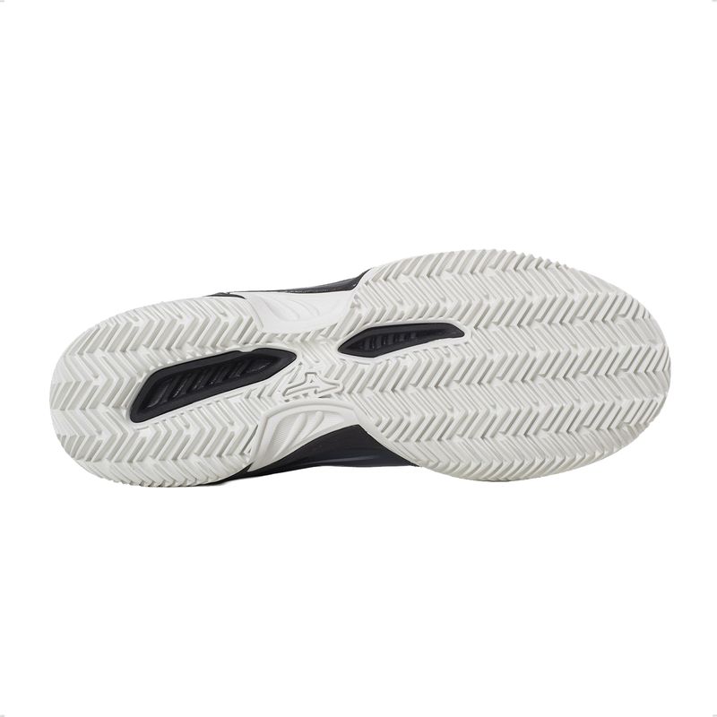 Su capellada sintética resistente brinda soporte lateral y una buena sujeción del pie, mientras que el interior acolchonado aporta confort durante el juego prolongado. La entresuela con amortiguación ayuda a absorber impactos y mejorar la estabilidad en desplazamientos laterales. Incorporan suela Clay Court (CC), diseñada para canchas de polvo de ladrillo, que ofrece excelente tracción y control de deslizamiento.
