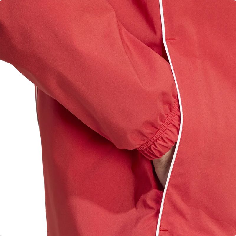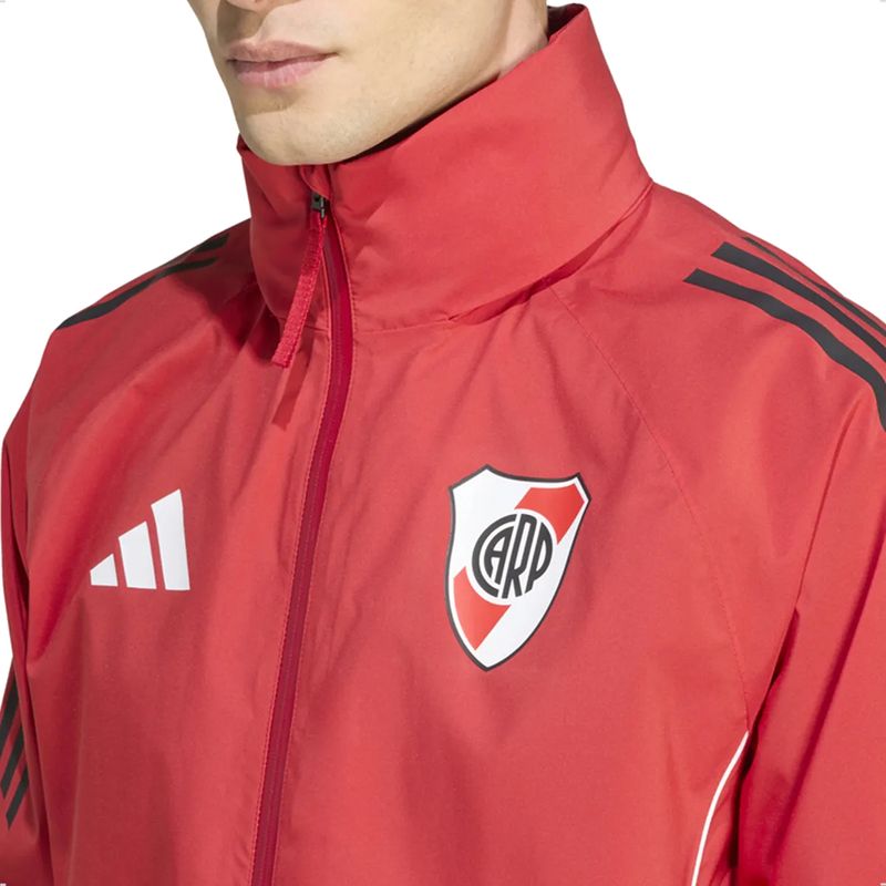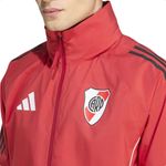La campera de entrenamiento oficial de River Plate 2025, diseñada por Adidas, está fabricada para acompañarte en cualquier clima. El tejido exterior impermeable tipo rompevientos protege del viento y la lluvia ligera, mientras que el forro interno de malla permite una adecuada ventilación. Cuenta con cierre frontal completo, puños y dobladillo elásticos para mejor ajuste y bolsillos laterales con cierre para guardar tus objetos seguros. El escudo de River Plate estampado en el pecho evidencia tu pasión por el club.